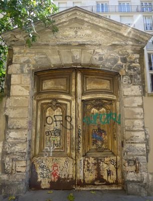 Het Hôtel Raoul staat op nummer 6 van de rue Beautreillis, met ijzeren balkons, een versierde poort en een decoratieve klok met dolfijnen.