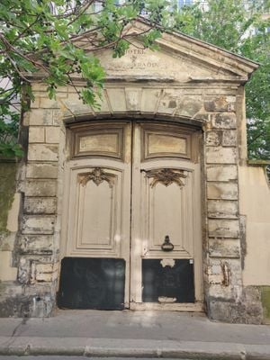 De bewaard gebleven poort en klok van Hôtel Raoul zijn zichtbaar vanaf de rue Beautreillis, terwijl het gerestaureerde terracotta beeld op zijn originele locatie staat.