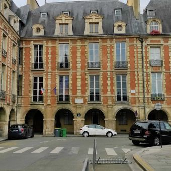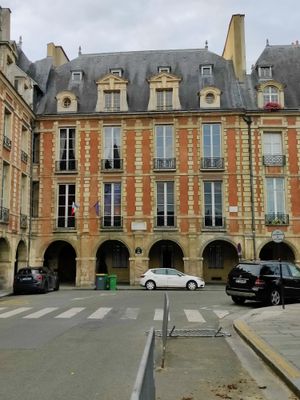 Het Hôtel de Rohan-Guémené staat op nummer 6 van het Place des Vosges, met een centrale structuur en twee vleugels met elk tien ramen.