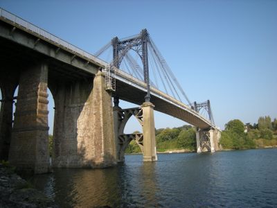 Oorspronkelijk gebouwd als hangbrug in 1840, onderging de constructie in 1925 een grote transformatie om zowel weg- als spoorverkeer mogelijk te maken.