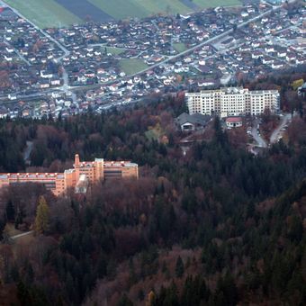 Het gebouw ligt op ongeveer 1.050 meter hoogte in de Alpen en biedt een zeldzaam inzicht in hoe architectuur in industriële stijl in een alpiene omgeving werd geïntegreerd. Deze plaatsing op een berghelling toont hoe grote structuren uit die periode zich aanpasten aan moeilijk terrein.
