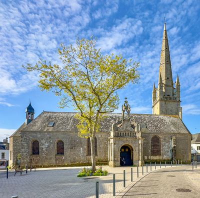 De Église Saint-Cornély de Carnac is een stenen kerk gedefinieerd door een 40 meter hoge klokkentoren met vierkante basis, stenen balustrades, decoratieve pinakels en een piramidaal gevormde spits. Het gebouw toont een mix van architectonische elementen die zich in de loop der tijd hebben ontwikkeld, wat resulteert in een uniforme en onderscheidende silhouet.