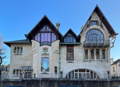 Villa Majorelle is een Art Nouveau-huis in Nancy, rond 1900 gebouwd voor een meubeldesigner. De gevel vertoont smeedijzeren versieringen, gekleurde keramische tegels en glaselementen die naadloos in de gebogen architectuurvormen opgaan.