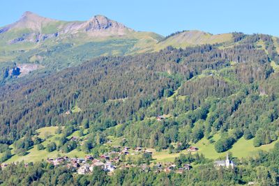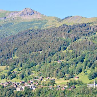 Saint-Nicolas-de-Véroce ligt op 1180 meter op een rotsachtig plateau onder de Mont-Joly, met directe uitzichten op het Mont-Blanc massief in de Franse Alpen.