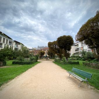 De Marguerite-Boucicaut-tuin beslaat 500 vierkante meter binnen een moderne ecowijk, met honderdjarige kastanjebomen en een centraal waterbassin.