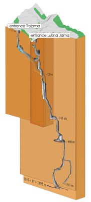 Lukina jama-Trojama is een grottenstelsel in de Hajdučki kukovi-bergen dat zich uitstrekt over ongeveer 3700 meter kalksteenpassages en meer dan 1400 meter onder de ingang afdaalt. Het netwerk bevat meerdere grote kamers en verticale schachten die een complex ondergronds landschap vormen.