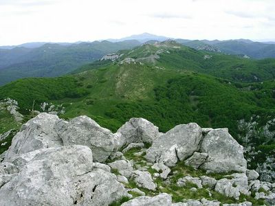 De kalkstenen top van de Snježnik bereikt 1506 meter boven zeeniveau, met steile weiden en rotsachtige bergkammen.