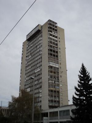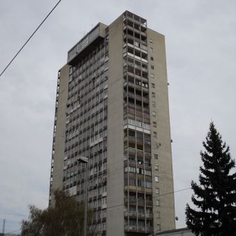 Het 73 meter hoge woongebouw telt 23 verdiepingen met een betonnen gevel ontworpen door architect Slavko Jelinek.