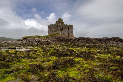 Ballinskelligs Castle is een stenen torenhuis gebouwd op een smal schiereiland langs de westkust van de baai, met dikke muren en strategisch geplaatste openingen met uitzicht op het water. De ruïnes behouden hun originele vorm en structurele elementen die ooit de defensieve mogelijkheden van het gebouw bepaalden.