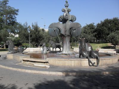 Lions Fountain, Jerusalem, Bronzen fontein in Bloomfield Park, Jeruzalem, Israël.