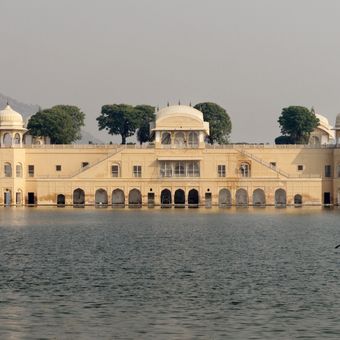 Jal Mahal is een paleis op een kunstmatig eiland in het Man Sagar-meer in Jaipur. Vier verdiepingen blijven onder water, terwijl de vijfde boven het oppervlak uitsteekt en vanaf de oevers kan worden bekeken.