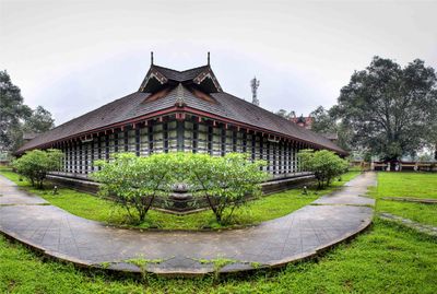 Het gebouw mengt traditionele Kerala-architectuur met gedetailleerd houtwerk en hellende dakpannen, waarbij elk deel aan een specifieke godheid is gewijd. Deze ruimtelijke indeling weerspiegelt zorgvuldige planning die het hele terrein in een verbonden heilig systeem omzet.