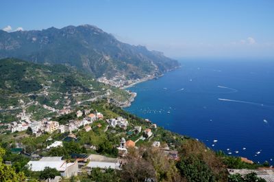 Ravello bevindt zich 350 meter boven zeeniveau aan de Amalfikust, met uitzicht over de Middellandse Zee via verschillende terrassen.