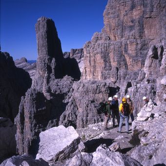 Klimmers kunnen de berg bereiken via drie berghutten: Rifugio Brentei op 2182m, Rifugio Pedrotti op 2491m en Rifugio Alimonta op 2580m.