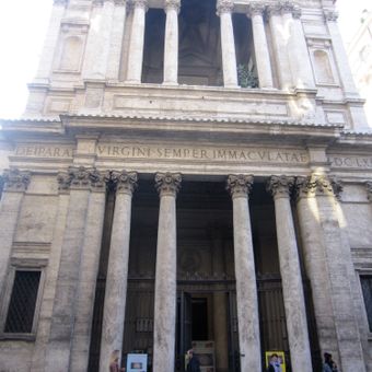 Santa Maria in Via Lata is een mineurbasiliek aan de Via del Corso in Rome die het erfgoed van meerdere bouwfasen weerspiegelt en rijke binnenafwerking vertoont. De barokke renovatie van de 16e eeuw creëerde de huidige vorm, compleet met klokkentoren, drie bronzen klokken en een ingewikkeld ontworpen altaargebied.