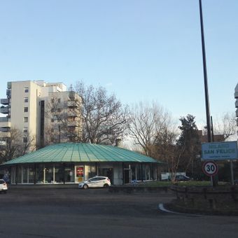 Het wooncomplex Milano San Felice strekt zich uit over 0.6 vierkante kilometer met rijtjeshuizen georganiseerd in een moderne stedelijke indeling op 107 meter hoogte.