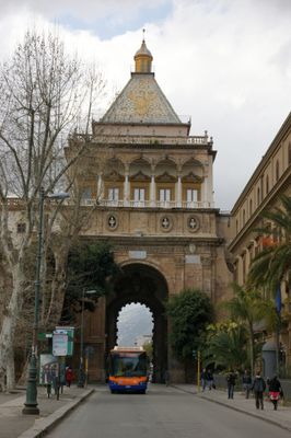 De structuur markeert de ingang van de Cassaro, de oudste straat van Palermo, die het Normandische Paleis verbindt met het Kathedraalgebied.