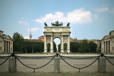 De Vredesboog is een neoklassiek marmermonument aan de noordelijke rand van Sempione Park, ongeveer 25 meter hoog met Korinthische zuilen, sculpturen en gedetailleerde gesneden reliëfs op zijn gevel. Het gebouw toont fraai bewerkt steenwerk dat een groots entree naar het park vormt.