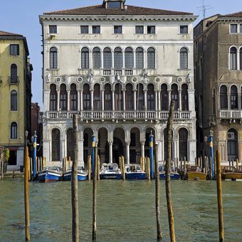 Het vier verdiepingen tellende Ca' Loredan paleis staat aan het Canal Grande nabij de Rialtobrug, met een centrale portiek met vijf Korinthische bogen.