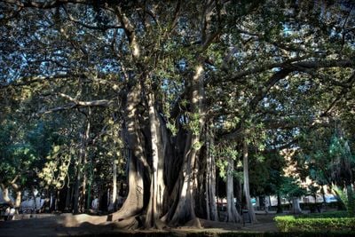 De tuin herbergt een Ficus macrophylla van 30 meter hoog met een stamomtrek van 21 meter, het grootste exemplaar van Europa.
