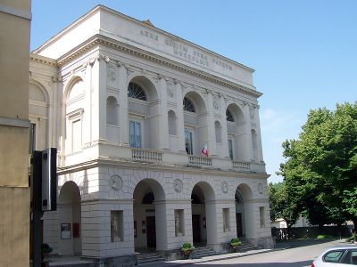 Ingenieur Ireneo Aleandri ontwierp dit theater, dat op 3 augustus 1864 zijn deuren opende met de première van de opera Guisemberga da Spoleto.