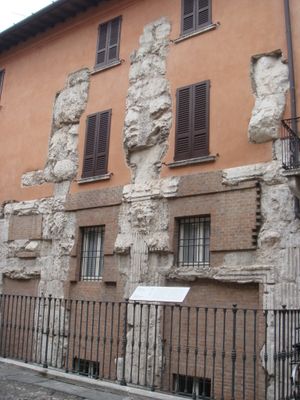 De Romeinse basiliek op het Piazza del Foro is een rechthoekig gebouw met stenen zuilen en antieke architectuurelementen uit de 1e eeuw na Christus. Dit gebouw was onderdeel van een groter Romeins complex waarvan de resten vandaag nog zichtbaar zijn.