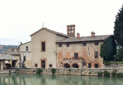 De San Giovanni Battista kerk staat bij het centrale thermale bad van Bagno Vignoni en vertoont gotische architectuurelementen in haar structuur.