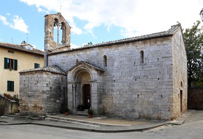 Santa Maria Assunta is een Romaanse kerk in San Quirico d'Orcia gebouwd met vierkante travertijnblokken in een regelmatig patroon. Het interieur bestaat uit een eenassige opstelling met een kleine apsis versierd met gesneden dierenkopfiguren die textuurdetails toevoegen aan de heilige ruimte.