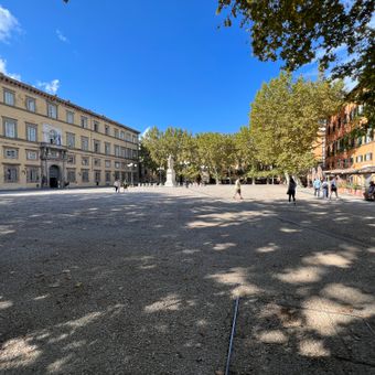 Piazza Napoleone is een rechthoekig plein in Lucca omlijst door ordentelijke rijen platanen die schaduw en structuur aan de ruimte geven. Het indrukwekkende Palazzo Ducale domineert de gehele westkant, terwijl een marmeren standbeeld in het centrum als middelpunt van het plein dient.