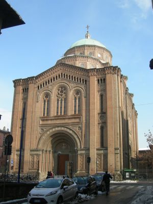 De constructie begon in 1901 onder leiding van Kardinaal Domenico Svampa, volgens het ontwerp van Edoardo Collamarini, en werd voltooid in 1912. In 1929 stortte de koepel in, maar het gebouw werd volgens de originele plannen herbouwd in plaats van vervangen.