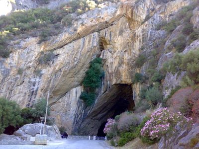 Archeologische vondsten in de grot omvatten aardewerk en artefacten uit het Neolithicum, wat wijst op gebruik als schuilplaats in oude tijden.