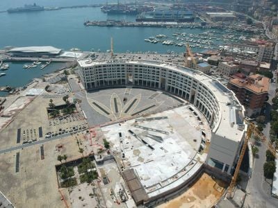 De halfronde gevel mengt klassieke bogen met hedendaagse materialen, waardoor een Zuid-Italiaanse bouwtraditie opnieuw wordt uitgelegd. Bezoekers kunnen deze mix van oud en nieuw ervaren terwijl zij door de open winkelgalerijen wandelen.
