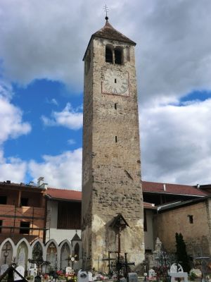 Tower of the old parish church in Laatsch, bouwwerk in Zuid-Tirol, Italië