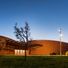 Het gebouw integreert zich in zijn locatie op de heuvel tussen olijfbomen, met faciliteiten voor podiumkunsten en publiek comfort.