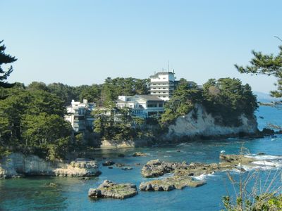 De Rokkakudo, een rood zeshoekig gebouw met uitzicht op de Stille Oceaan, staat als herbouwd oriëntatiepunt na de tsunamiverwoesting van 2011.
