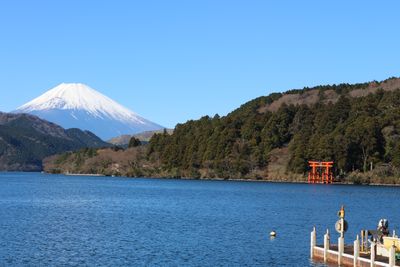 Het Ashi-meer is een kratermeer in Hakone op 723 meter hoogte met beboste oevers en zicht op de berg Fuji in het westen. Het water strekt zich uit over enkele kilometers en drie kleine havens verbinden de nederzettingen rond het meer.