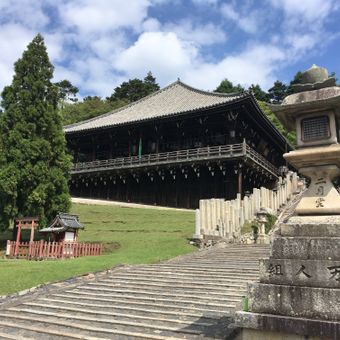 De houten structuur van Nigatsu-do staat op palen langs de oostelijke helling van de Berg Wakakusa, verbonden met het Todai-ji complex door stenen paden.