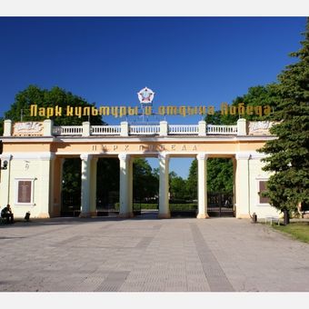Het Overwinningspark, opgericht in 1947 na de Tweede Wereldoorlog, fungeert als herdenkingsruimte voor oorlogsdeelnemers.