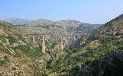 Mala Rijeka Viaduct is een spoorwegbrug van beton en staal die zich 498,8 meter uitstrekt over een diep dal terwijl het een enkel spoor 198 meter boven de rivier draagt. De structuur gebruikt een ontwerp met liggers en vakwerk met massieve steunpilaren die het gewicht van treinen over de ontoegankelijke kloof verdelen.