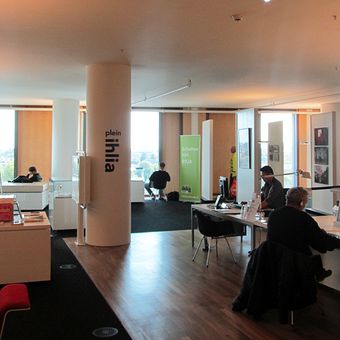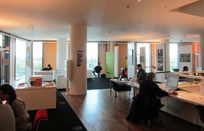 Bezoekers kunnen terecht in de leeszaal op de derde verdieping van de Openbare Bibliotheek Amsterdam, waar medewerkers helpen bij het zoeken.