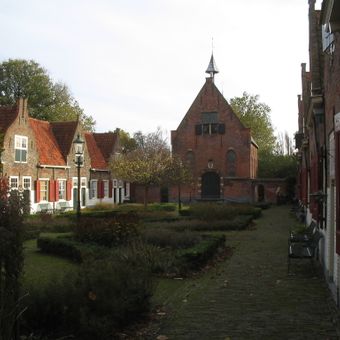 Gesticht in 1496 door Hendrik van Naaldwijk, werd het complex tussen 1627 en 1636 onder Prins Frederik Hendrik uitgebreid met vijftien woningen.