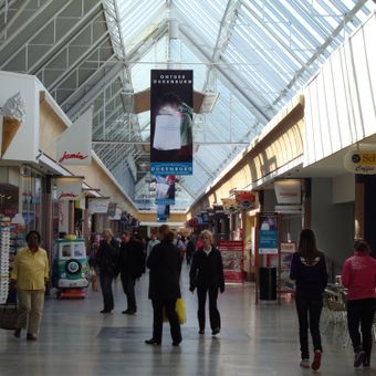 Winkelcentrum Dukenburg bevat talrijke winkels, waaronder grote ketens zoals MediaMarkt, Hema en de Albert Heijn XL supermarkt verspreid over meerdere gangen.