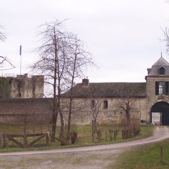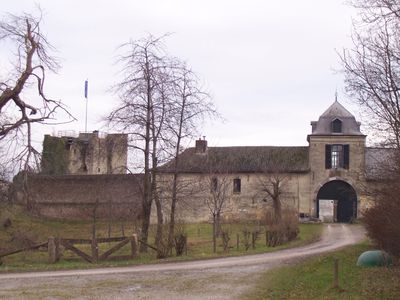De vierkante donjon van Kasteel Lichtenberg staat op een kalksteinberg ten zuiden van Maastricht en kijkt uit over het omringende landschap.