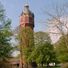 Het bakstenen gebouw rijst 29 meter hoog met een cirkelvormige plattegrond en heeft een gietijzeren Intze 2 reservoir op de top.