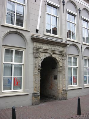 Munt van Holland, Historisch gebouw Voorstraat 186 in Dordrecht, Nederland.