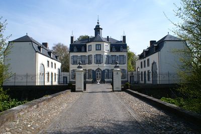 Gelegen aan de Kasteelweg 21 staat het kasteel op drie opeenvolgende omgrachte eilanden nabij de Maas, met Lodewijk XVI stijlelementen.