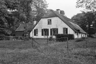 Boerderij nabij de toren gelegen, witgepleisterd langhuis