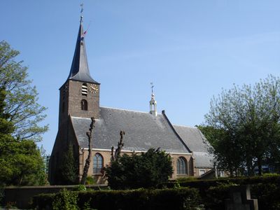 Toren der Nederlands Hervormde Kerk. Toren, die in een latere periode verhoogd is. Mechanisch torenuurwerk, A. Vos en Zn., 1906, buiten gebruik