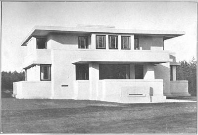 De villa combineert principes van Frank Lloyd Wrights Prairie Houses met de introductie van gewapend beton constructiemethoden in Nederlandse woningbouw.