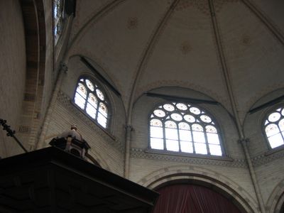 Delen van de oorspronkelijke middeleeuwse kapel blijven zichtbaar in de Enge Kapelsteeg, terwijl de historische torenspits de Papegaaikerk siert.